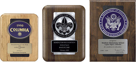 | PFA100 - 810 8”x 10” Cherry w/radius corners, slate textured back 8”x 10” and 9”x 12” | PFA100 - 912 9”x 12” Walnut w/radius corners, swirled aluminum back 8”x 10” and 9”x 12” | PFA200 - 1013 10”x 13” Walnut w/cove edge, slate textured back