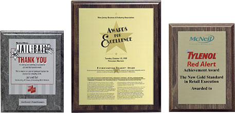 standard sizes of 7”x9”, 8”x10” and 9”x12”. Optional personalization by engraving or screening on the main copy plate or a separate nameplate.